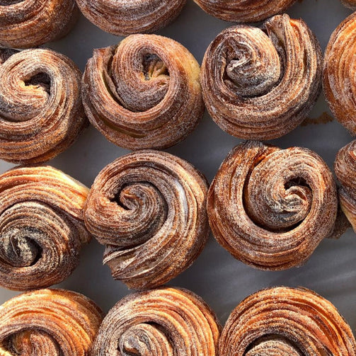 Layer upon layer of crisp, yet soft and airy, croissant with the perfect amount of cinnamon sugar. These are so good you'll find it hard to stop at one!