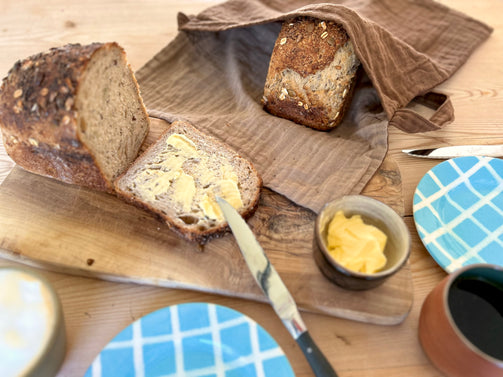 Master the art of sourdough baking with our Sourdough Baking for Beginners Essentials Kit - packed with the tools and guidance needed to craft delicious, artisan-quality bread at home. Plus, it includes a Rüdi's Bread Bag for storing your bakes!