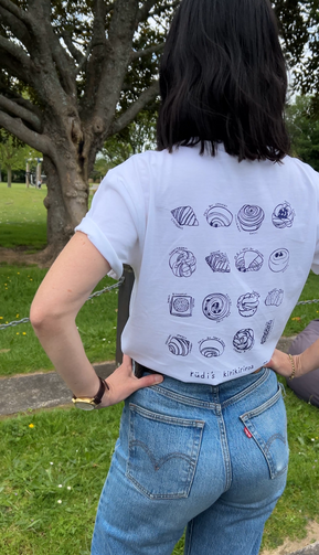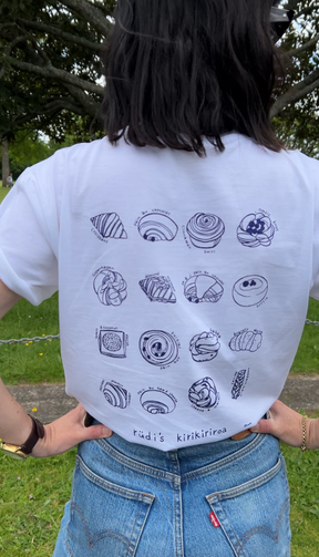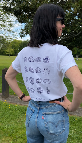 This is a limited-run of tees with the print designed by Masayo, our wonderful barista. It celebrates all your favourite Rüdi’s pastries in one joyous hand-drawn print - from the humble croissant to the crispy cinnamon swirl.